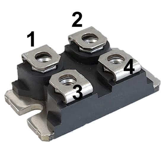 近日,清纯半导体正式推出1200V/3.5mΩ的SiC MOSFET芯片(型号:SG2MA35120B)及对应SOT227封装产品(型号:S1P04R120SSE),以满足客户在高性能、大功率应用的需求。图1和图2分别展示了该芯片单管SOT227封装 (图3)的输出和击穿特性曲线。在室温下,该芯片电阻为3.5毫欧,击穿电压不低于1600V。本产品通过设计和工艺的改进,完成对芯片电流路径上高温分布电阻的优化,特别是沟道电阻与N型区电阻的折中设计,实现了优秀的电阻温度系数。测试结果表明在175℃下芯片导通电阻仅为室温下电阻的1.5倍。
